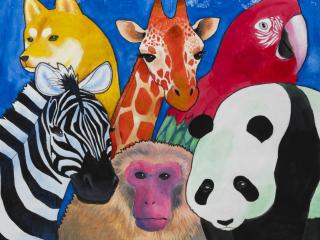 絵の具のまじりあう色とタッチが何ともきれいでした!動物の表情も豊かさを感じましたやわらかくてじんわり和みます。これからも制作頑張ってください。
